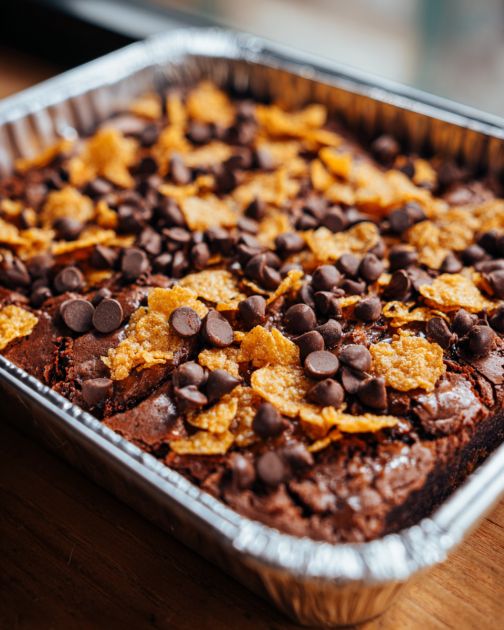 5-Ingredient Caramel Brownie Crunch (2 Tin Foil Trays)
