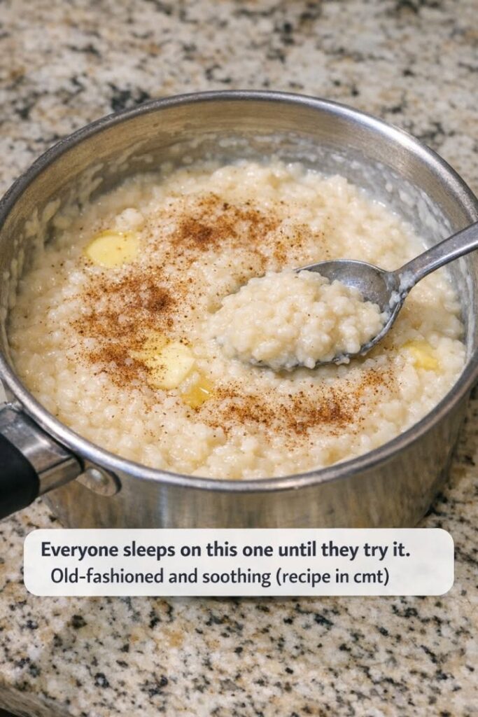 This rice pudding is lovely just as it is, still warm from the saucepan, but it also plays nicely with other simple country favorites. A handful of fresh or thawed berries on the side brightens it up, and a few apple slices—maybe from a pan of fried apples or a simple baked apple—make it feel like the kind of dessert you’d get after Sunday supper. It’s also a nice ending to a hearty meal of meatloaf, roast chicken, or a big pot of bean soup, when you want something a bit sweet but not heavy. If you’re serving coffee after supper, a small cup of this pudding in a pretty bowl, with a dusting of cinnamon or nutmeg if you like, makes a cozy little plate that feels both homey and special.