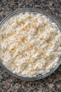 In a bowl, mix the zucchini, cottage cheese, mozzarella, Parmesan, eggs, mini turkey pepperoni or chicken, Italian seasoning, garlic powder, and black pepper until thick and evenly combined.