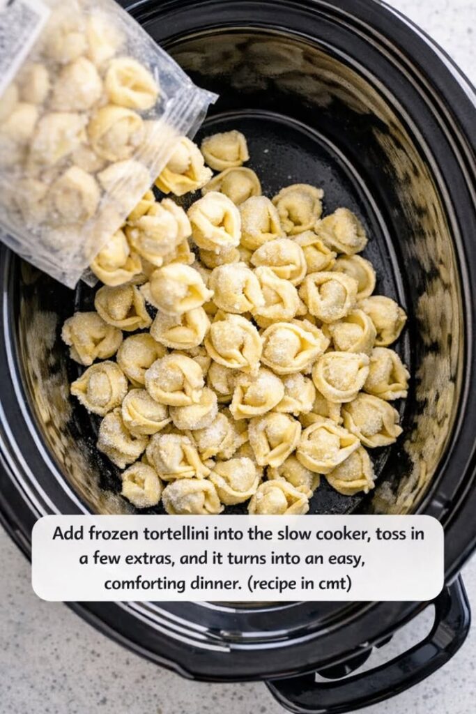 Slow Cooker 5-Ingredient Frozen Tortellini Comfort Bake