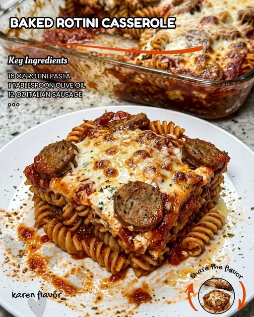 A hearty, cheesy, and comforting baked pasta casserole loaded with Italian sausage, marinara sauce, ricotta, and a blend of Parmesan and mozzarella. Perfect for family dinners and potlucks!