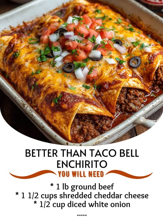 This homemade enchirito is next-level delicious—soft tortillas stuffed with seasoned beef and beans, smothered in rich red sauce, and topped with melty cheese for that ultimate comfort bite.