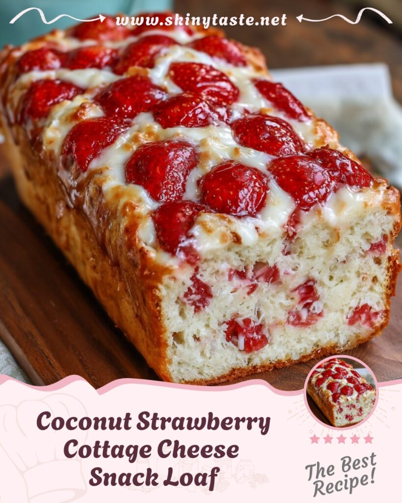 Cool well before slicing. The strawberries stay soft and juicy while the coconut gives every slice a rich sweet finish.