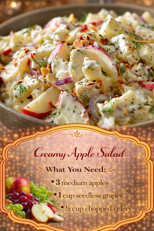 Creating this Creamy Apple Salad is more than just a cooking task; it’s an experience filled with joy and flavor. Each bite offers a delightful crunch, a burst of sweetness, and a creamy finish that dances on your palate. Whether you’re serving it at a family gathering or enjoying it solo, this salad brings a refreshing twist to any meal. It’s a reminder that simple ingredients can create something truly special. So, roll up your sleeves, gather your loved ones, and let this salad be the star of your next culinary adventure!