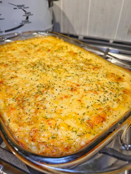 This creamy lemon chicken orzo bake is bright, cozy, and perfect for feeding a crowd. The orzo cooks right in the sauce with chicken, lemon, and herbs, then finishes with a golden, cheesy Swiss topping.