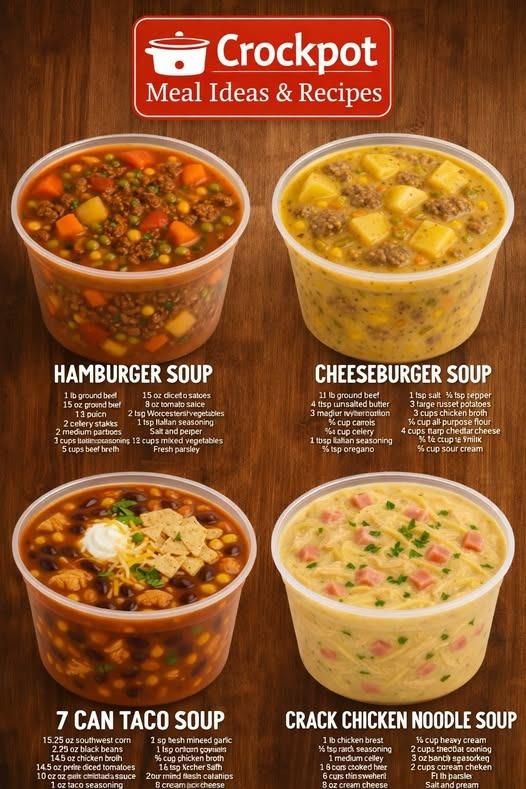The idea of making four different types of cozy soup all at the same time in a single slow cooker might sound like a bit of kitchen magic but it is actually a very clever trick that will change the way you look at meal prepping forever. This recipe is designed for people who love variety and want to please everyone at the dinner table without spending the entire day standing over a hot stove or washing a dozen different pots and pans. By using a few simple household items like heavy duty foil and slow cooker liners you can divide your large crockpot into four separate sections that each hold a unique and delicious flavor profile. This specific guide will show you how to prepare a creamy tomato basil soup and a hearty vegetable medley along with a classic chicken noodle and a savory lentil soup all in one go. It is the ultimate kitchen hack for busy families or single professionals who want to stock their freezer with different lunch options for the week ahead without repeating the same meal every single day. You do not need to be a professional chef or have expensive kitchen gadgets to make this work because the steps are very easy to follow and the results are consistently amazing for beginners and experts alike.