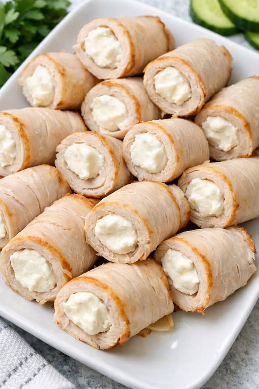 Refrigerate the wrapped turkey logs for at least 30 minutes, or up to several hours, until well chilled. This firming step helps you get neat slices and that clean contrast between the white filling and tan turkey edges.