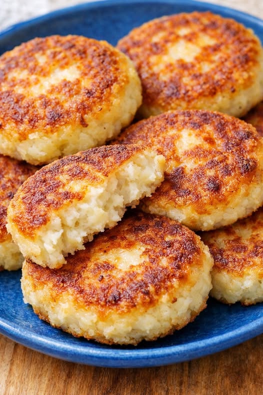 Serve the mashed potato cakes right away while the edges are still crackly and the centers are soft and fluffy.