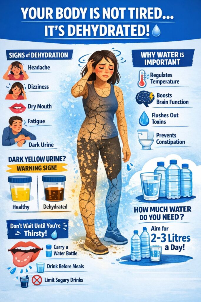 π‘ Tip: Donβt wait until you feel thirsty β thirst is often a late sign of dehydration.