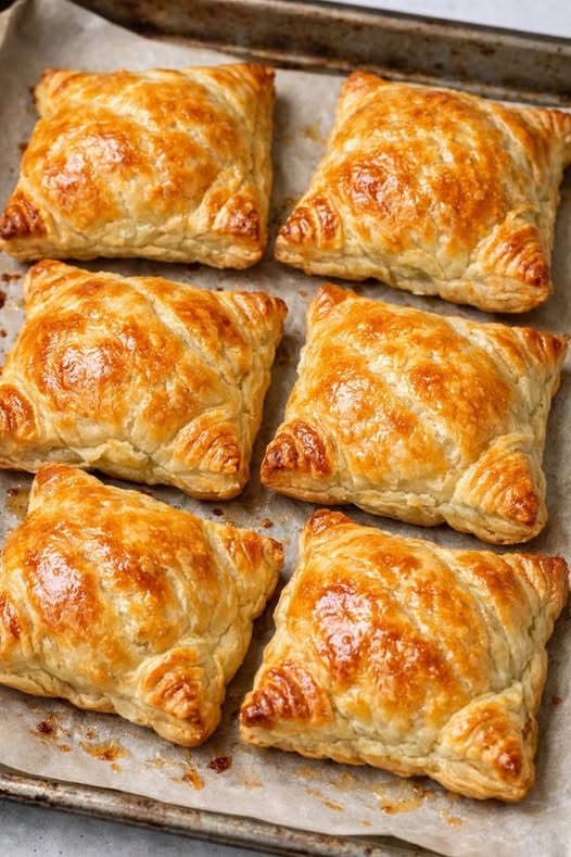 Bake: Slide the tray into the preheated oven and bake for 18–22 minutes, or until the parcels are puffed, flaky, and deep golden brown with a few glossy spots. Rotate the pan halfway through baking if your oven has hot spots.