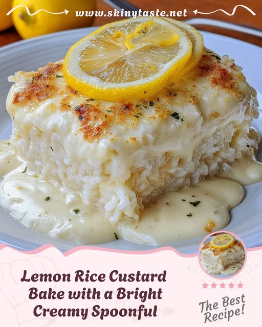 Lemon Rice Custard Bake with a Bright Creamy Spoonful