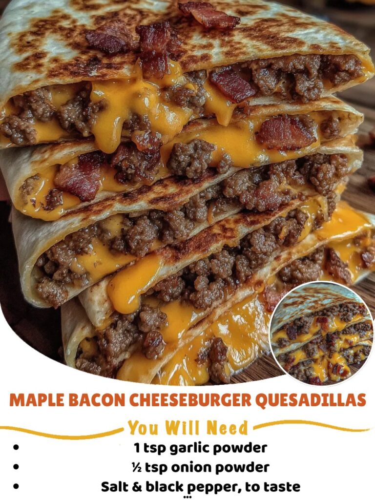 Maple Bacon Cheeseburger Quesadillas combine all your favorite burger flavors in an irresistible handheld form. Crispy tortillas stuffed with seasoned beef, smoky bacon, gooey cheese, and a touch of maple create the ultimate comfort meal for family dinners, game nights, or anytime you crave something slightly over-the-top.
