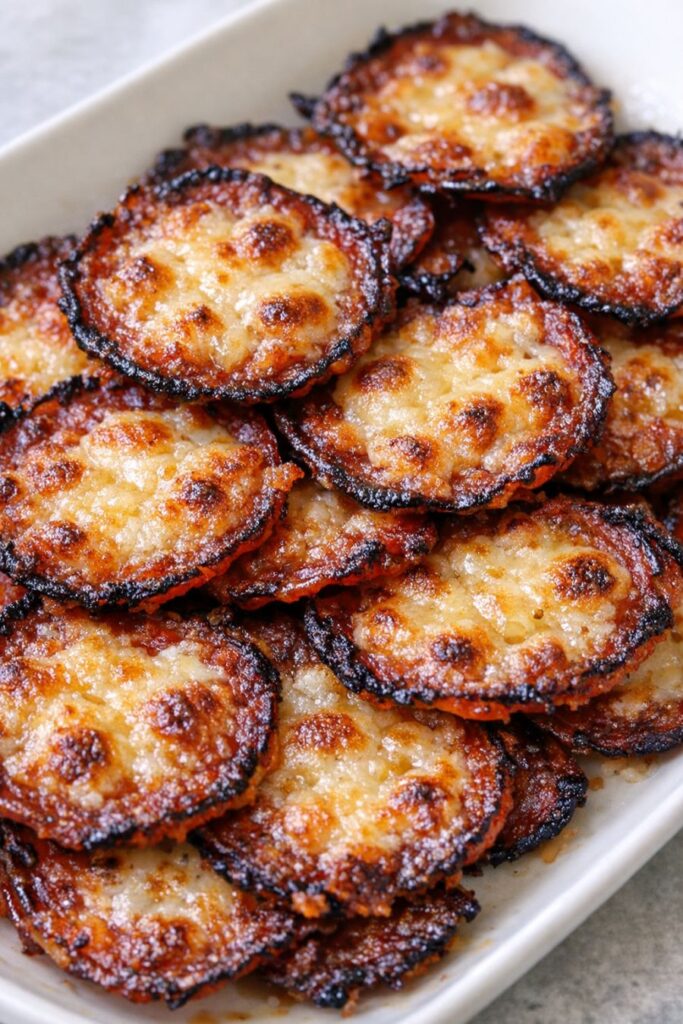 Serve these pepperoni crisps warm on a platter with a small bowl of marinara or pizza sauce for dipping, or alongside a simple green salad to balance their richness. They’re perfect with a cold beer, a glass of red wine, or sparkling water with lemon. For a more substantial spread, pair them with raw veggies and a creamy dip, olives, or a small cheese board so guests can mix and match textures and flavors.