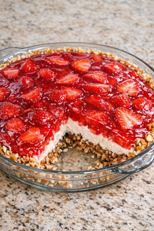 This strawberry pretzel pie is straight from my husband’s Grandma Joyce, who swore it was the fastest way to make everyone sprint to the kitchen. It’s that perfect sweet-salty combo: a crunchy, buttery pretzel crust, a fluffy cream layer, and a glossy red strawberry gelatin topping loaded with berries. It looks fancy in a glass pie dish on the counter, but it’s secretly simple and totally doable on a weeknight after work. If you grew up in the Midwest, this probably reminds you of every church potluck and family reunion—only this version is scaled for a pie dish instead of a giant casserole, so it’s perfect for smaller gatherings or just a treat for the week.