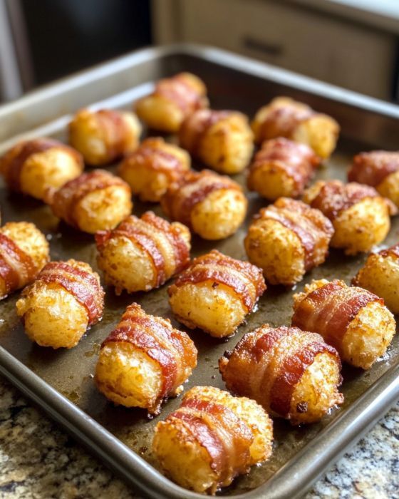 Bake: Bake in the preheated oven for 20-25 minutes, or until the bacon is crispy and the tater tots are golden brown.