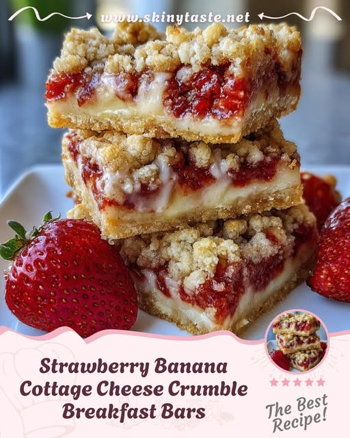Strawberry Banana Cottage Cheese Crumble Breakfast Bars
