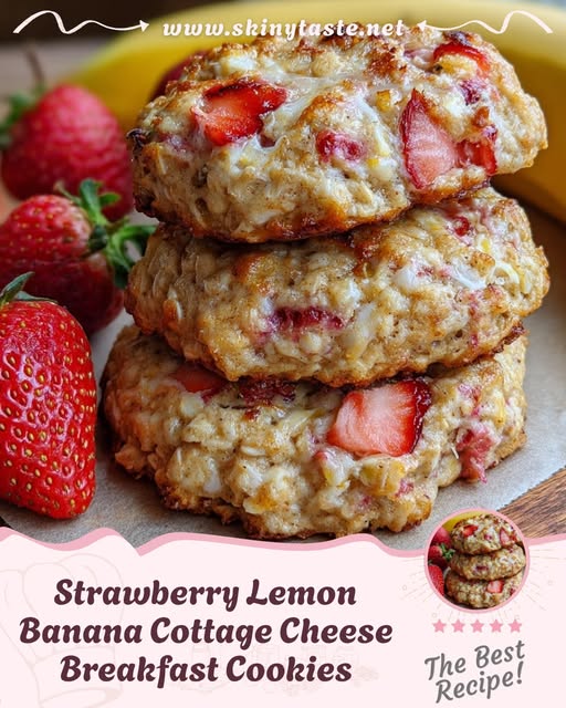 Strawberry Lemon Banana Cottage Cheese Breakfast Cookies